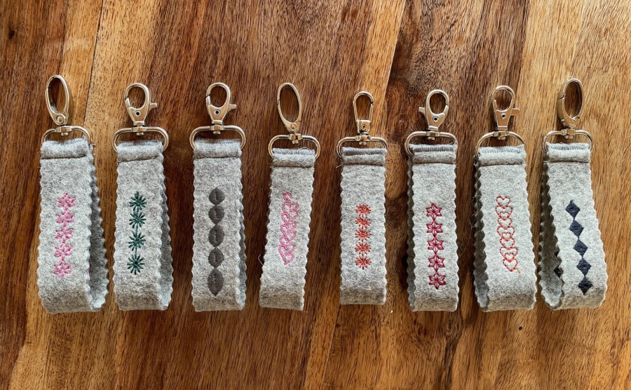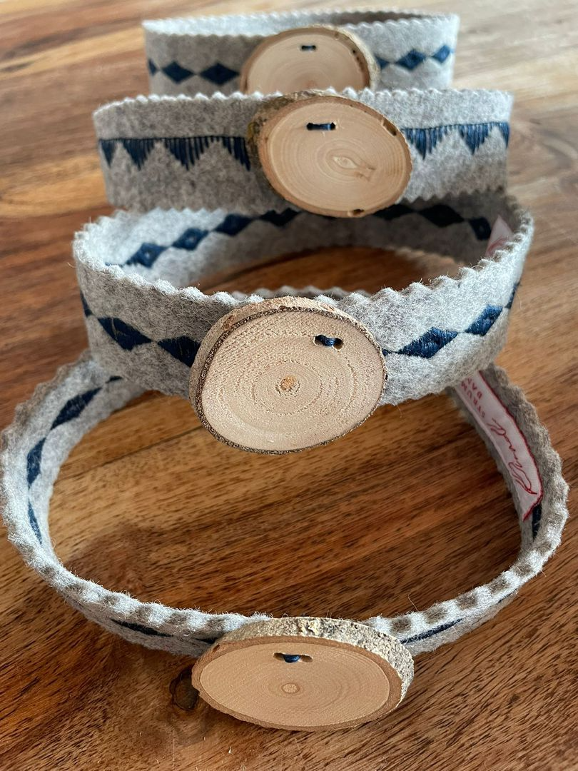 Die Dirndl-Strumpfbandl gibt es auch aus allen Stoffen der Fächer und Tascherl.